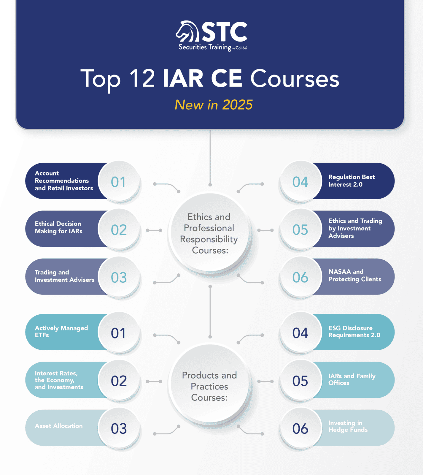 STC is an approved Investment Adviser Representative Continuing Education (IAR CE) provider, offering a complete catalog of online IAR CE courses that are designed to help you better serve your clients and stay compliant.